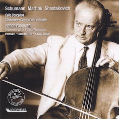 スイスのCASCAVELLEがスイス・ロマンド放送局に残つてゐた貴重な音源を商品化した。取り分けマルティヌーとショスタコーヴィチが珍品だ。まず、得意としたシューマンが名指揮者フリッチャイとの演奏で1957年のライヴ録音だ。管弦楽の精度は冴えないが絶妙な伴奏を聴かせる。フルニエの演奏も良く、情感豊かな第2楽章は流石だ。さて、マルティヌーとショスタコーヴィチは1978年3月15日のライヴ録音なのだが、指揮者がサヴァリッシュとホーレンシュタインで振り分けてゐるのが面白い。フルニエはマルティヌーのソナタも好んで取り上げてをり、協奏曲でも自信が窺へる。発火するやうな熱情を燃やすオーケストラと抒情的で美しい独奏の対比が特徴的な名作で、フルニエ盤は最右翼の名演だらう。ショスタコーヴィチはとても意外な演目だ。フルニエ向きの作品ではないが、ホーレンシュタインの好演もあつて聴かせる。フルニエは衰へを見せなかつたが、晩年になつて難曲に果敢に挑む姿には胸打たれる。(2025.8.9)