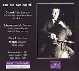 愛好家を驚愕させたmelo CLASSIC。ドイツ放送局に残した放送録音で、協奏曲は1949年の記録だ。ドヴォジャークはアルトゥール・ローター指揮ベルリン放送交響楽団と、シューマンはヘルムート・シュナッケンブルク指揮ブレーメン・フィルとの演奏だ。マイナルディは室内楽が良く、協奏曲もしつかり弾くが派手さや見栄えには無頓着だ。難所を丁寧に弾くので盛り上がらないが、歌ふ箇所は含蓄深く流石だ。ドヴォジャークでは音符を減らして弾いてゐる箇所もあり興醒めだ。管弦楽伴奏は水準程度で、2曲とも矢張りレーマン指揮によるDG正規録音が良からう。ショパンとヴェーバーは戦中1942年の帝国放送録音だ。ショパンの侘びた音色と寂れた語り口は一種特別だ。特異なチェリストであることを諒解出来るだらう。ヴェーバーの曲はヴァイオリンもしくはフルートの為のソナタの編曲であり、ピアティゴルスキーが良く演奏した。マイナルディの演奏は優美で古典的な快活さがあり素敵だ。(2025.9.12)