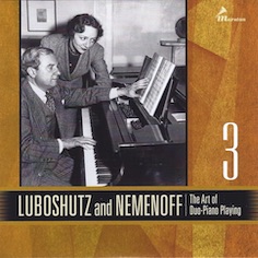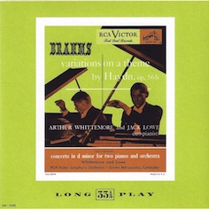 4枚組。3枚目。ピアノ・デュオにとりブラームスの変奏曲は重要な演目だ。ルボシュッツ&ネメノフのデュオは見事な一体感で完成度が高い。ロシア的な豪腕の演奏は重厚で交響的な力強さがある。だが、抜けがなく息苦しい。存外感銘度は低い。作品52の愛の歌、全18曲をショウ率ゐる合唱団と録音したものは代表的名盤と云へる。この曲にはブーランジェとリパッティの録音もあつたが、何と云つてもショウの合唱が素晴らしく格上に感じる。ポートノフの作品はブラームスの歌曲による編曲で面白からう。ルボシュッツが編曲したバッハの小品は気が利いてゐる。ヴィヴァルディ原曲BWV.593も2台ピアノによつて面白みを生み出してゐる。さて、重要なのはBWV.1061がクーセヴィツキー指揮ボストン交響楽団の伴奏で、タングルウッド音楽祭での1947年ライヴ録音であるといふことだ。豪勢な名演だ。(2025.10.18)