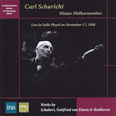 2枚組1枚目。初出となる1958年11月17日、ウィーン・フィルのパリ公演でサル・プレイエルにおける実況録音だ。残念だがモノーラルでの録音だ。後半の演目はベートーヴェンの第5交響曲で、2枚目に収録されてゐる。シューベルトの第5交響曲には正規録音こそ残らないもののライヴ録音は多く残り、得意としてゐたことがわかる。当盤の演奏は何よりもウィーン・フィルの相性が良く、理想的な名演が聴ける。連綿たる歌心、侘びた節回し、張らずに収める語尾、どれもこの曲の蘊奥を手管なく示して呉れる。見事だ。さて、シューリヒトにとつても唯一のアイネム作品が興味深い。アイネムは調性音楽を墨守したウィーン保守派を代表する作曲家だ。交響的情景は3つの楽章から成り、ストラヴィンスキーの新古典主義時代の作品に似た聴き易い音楽で滅法面白い。もつと演奏されて然るべき作品だ。(2025.12.12)
