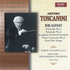 トスカニーニが最も輝いてゐたニューヨーク・フィル時代、1935年と1936年の放送録音で音質はかなり貧しいが、NBC交響楽団時代では聴けない大河のやうなカンタービレを体験することが出来る。セレナードの第1番は唯一の音源で貴重だ。第1楽章から生命力溢れる音楽作りでトスカニーニの魅力が全開だ。本当に素晴らしいのは第4楽章の中間部で、打ち震へるマエストロの歌声を伴ひ乍ら神妙な音楽を湧き上がらせる。第2番はNBC交響楽団との状態の良い録音があり、そちらを採るべきだらう。このニューヨーク・フィル盤のしなやかな歌も捨て難いが、如何せん音質が古過ぎる。(2025.9.30)