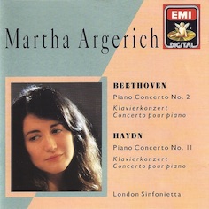 アルゲリッチの代表的名盤として有名な1枚。しかし、実はDischi Ricordiが原盤で、これはEMIが権利を取得し販売した盤なのだ。他にRCAやDENONからも発売されたことがあり、どれで聴くかが悩ましい録音だ。アルゲリッチが弾き振りしてゐる。ロンドン・シンフォニエッタは現代曲専門の団体だから古典中の古典を演奏してゐるのは珍しく、変はり種づくしの録音と云へる。ハイドンの最後かつ唯一のピアノの為の協奏曲とベートーヴェンの最初のピアノ協奏曲を組んだ優美な1枚だが、お侠なアルゲリッチの活気溢れる演奏で音楽に生命が吹き込まれてゐる。オーケストラの前奏から躍動してゐるが、アルゲリッチのピアノはその上を行く。ハイドンの第1楽章や第3楽章の楽しさは天才の業でこれ以上ない絶対的名演だ。ベートーヴェンも同じく見事だが、ハイドンほど振り切れてゐない。(2025.11.9)